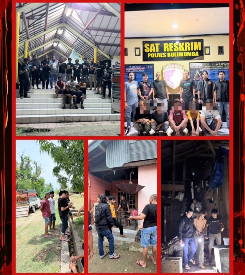 BULUKUMBA, TRISAKTINEWS.COM — Tim gabungan dari Resmob Satreskrim dan Kamneg Satintelkam Polres Bulukumba bersama Unit Reskrim Polsek Bulukumpa berhasil mengungkap kasus pencurian ternak (curnak) yang terjadi di wilayah hukum Polsek Bulukumpa. Sebanyak lima terduga pelaku berhasil diamankan, tiga di antaranya ditangkap di wilayah Kecamatan Cina, Kabupaten Bone.