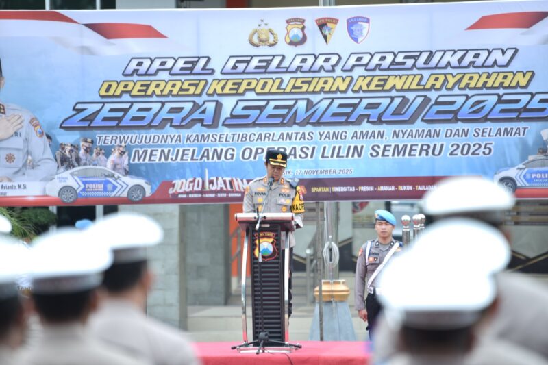 GRESIK, TRISAKTINEWS.COM — Polres Gresik resmi memulai pelaksanaan Operasi Zebra Semeru 2025 dengan menggelar Apel Gelar Pasukan di halaman Mapolres Gresik, Senin (17/11/2025). Operasi kepolisian kewilayahan yang digelar serentak di seluruh Jawa Timur ini akan berlangsung selama 14 hari, mulai 17 hingga 30 November 2025, dengan fokus meningkatkan disiplin berlalu lintas dan menekan angka fatalitas kecelakaan di wilayah Kabupaten Gresik.