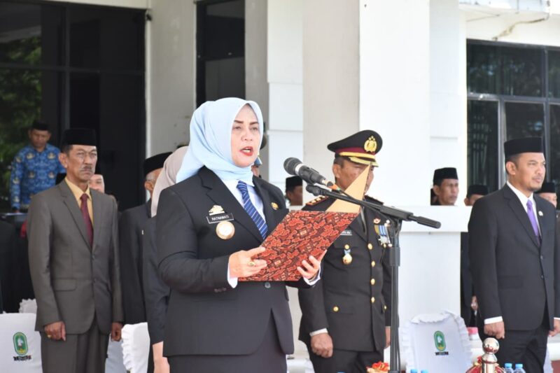 Bupati Sinjai, Hj. Ratnawati Arif dalam kesempatan ini bertindak sebagai pembina upacara.