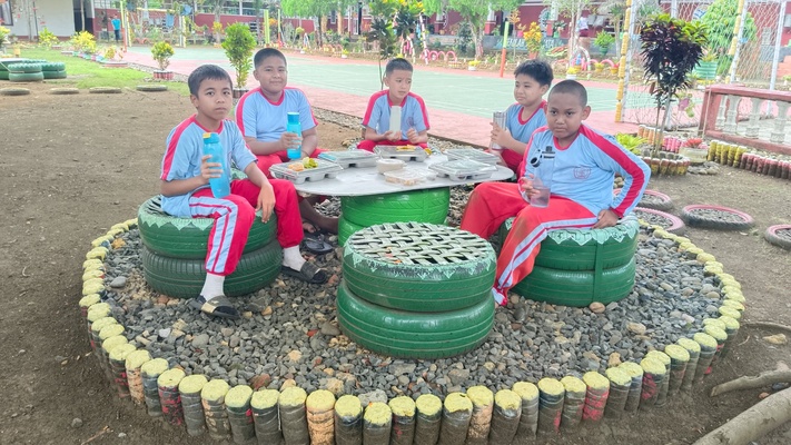 Selain memperindah lingkungan sekolah, pojok baca dari ban bekas tersebut kini menjadi salah satu titik favorit siswa untuk membaca, berdiskusi ringan, dan beristirahat saat jam senggang.