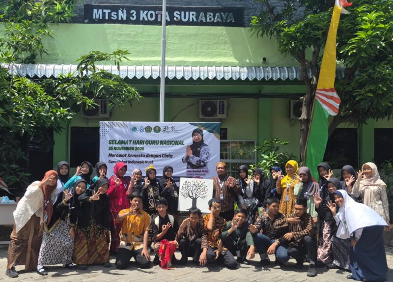 SURABAYA, TRISAKTINEWS.COM — Dalam rangka memperingati Hari Guru Nasional Tahun 2025, MTsN 3 Kota Surabaya menggelar serangkaian kegiatan yang berlangsung pada Selasa, 25 November 2025 mulai pukul 06.15 samapi 11.30.