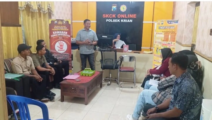 SIDOARJO, TRISAKTINEWS.COM — Kanit Reskrim Polsek Krian Iptu Dedik Irwanto memberikan sosialisasi tentang bahaya penyalahgunaan narkoba kepada masyarakat, khususnya para pemuda dan pemudi yang sedang mengurus Surat Pelaporan Kehilangan dan atau yang menunggu surat LP di Mapolsek Krian, kamis tanggal 18/9/25.
