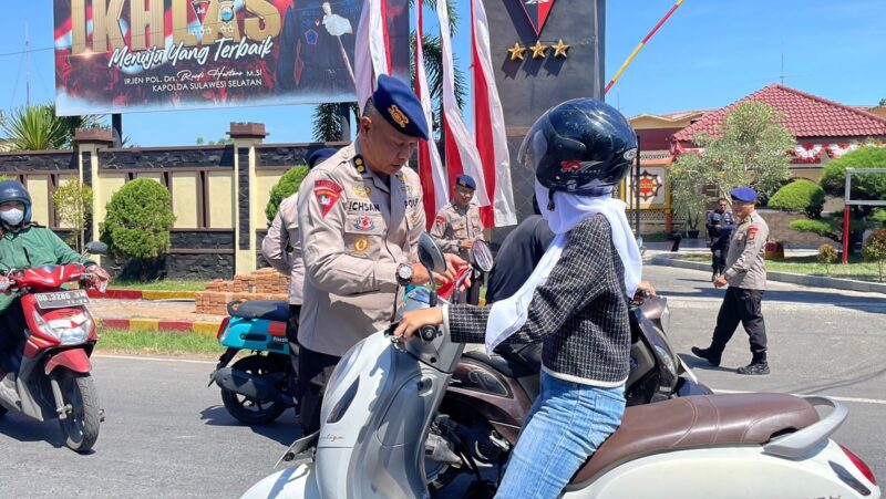 “Hari ini, personel Sat Brimob Polda Sulsel membagikan dan memasangkan bendera merah putih ukuran kecil kepada pengguna jalan yang melintas di depan Mako,” tutur Kombes Ridwan.