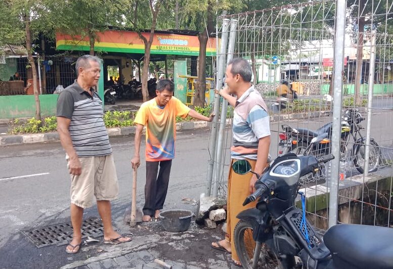 SURABAYA, TRISAKTINEWS.COM — Warga Rungkut Tengah RW 01, Kecamatan Gunung Anyar, Kota Surabaya, kompak menggelar aksi gotong royong memperbaiki jalan rusak di Jalan Rungkut Tengah Gang Sawah yang menjadi akses menuju Pasar Pahing, Minggu (23/11/2025).